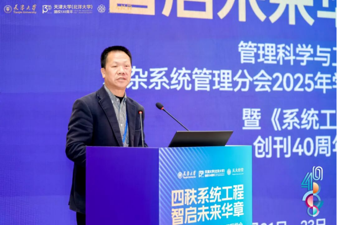 贾斌首先代表复杂系统管理分会向学术年会顺利举办和学报创刊四十周年表示热烈祝贺。他指出,分会旨在融合多学科知识与前沿技术,为强国建设提供科学支撑。贾斌强调,本届年会与学报创刊四十周年“共生共荣、相得益彰”,期待与会学者深入交流,共同推动复杂系统管理领域的创新发展。